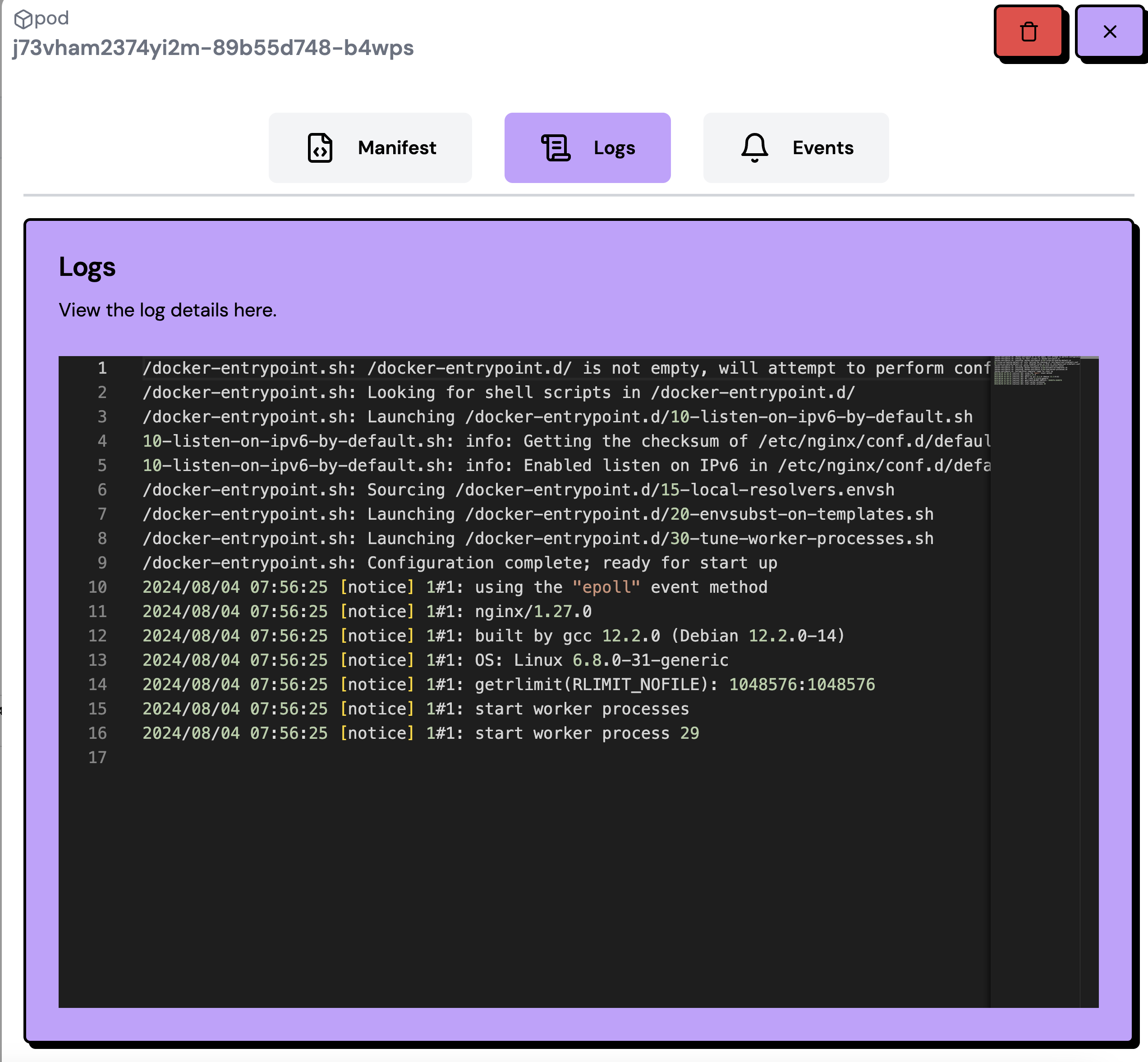 您可以在点击组件时查看其配置 / 日志 / 事件。